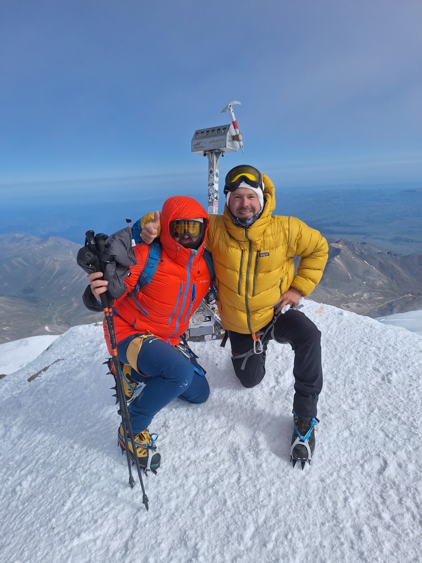 Ve 22:03 jsme vyrazili od chaty směrem k vrcholu. Čekala nás mrazivá noc – teplota kolem –16 °C a nárazy větru přes 90 km/h. Každý krok byl boj. Po 10 hodinách a 10 minutách stoupání jsme přesně v 8:13 stáli na nejvyšším bodě Evropy – Elbrus (5 642 m).
