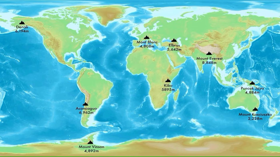 🏔️ Přehled druhých nejvyšších vrcholů kontinentů